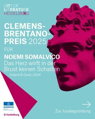 Der mit 10.000 Euro dotierte Clemens-Brentano-Preis für Literatur der Stadt Heidelberg ging 2025 an die in Bern lebende Autorin Noemi Somalvico. Sie nahm den Preis für ihren Erzählband „Das Herz wirft in der Brust keinen Schatten“ (Voland & Quist, 2024) Im Rahmen einer Feierstunde aus den Händen von Bürgermeisterin Martina Pfister im Spiegelsaal des Gebäudes Prinz Carl entgegen. Die Laudatio hielt der F.A.Z.-Redakteur Jan Wiele. Musikalisch wurde die Verleihung umrahmt durch die Cellistin Dorothea von Albrecht.
