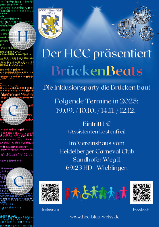 Die erste Inklusionsparty findet am 10. Oktober im Vereinshaus des HCC im Sandhofer Weg 11, 69123 Heidelberg-Wieblingen von 19 bis 22 Uhr statt. Der Einlass beginnt um 18.30 Uhr.