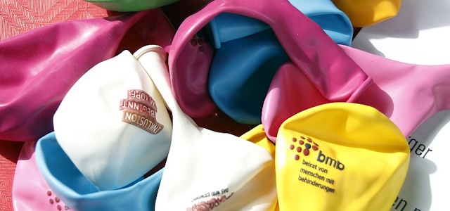 Luftballons mit dem Logo des bmb