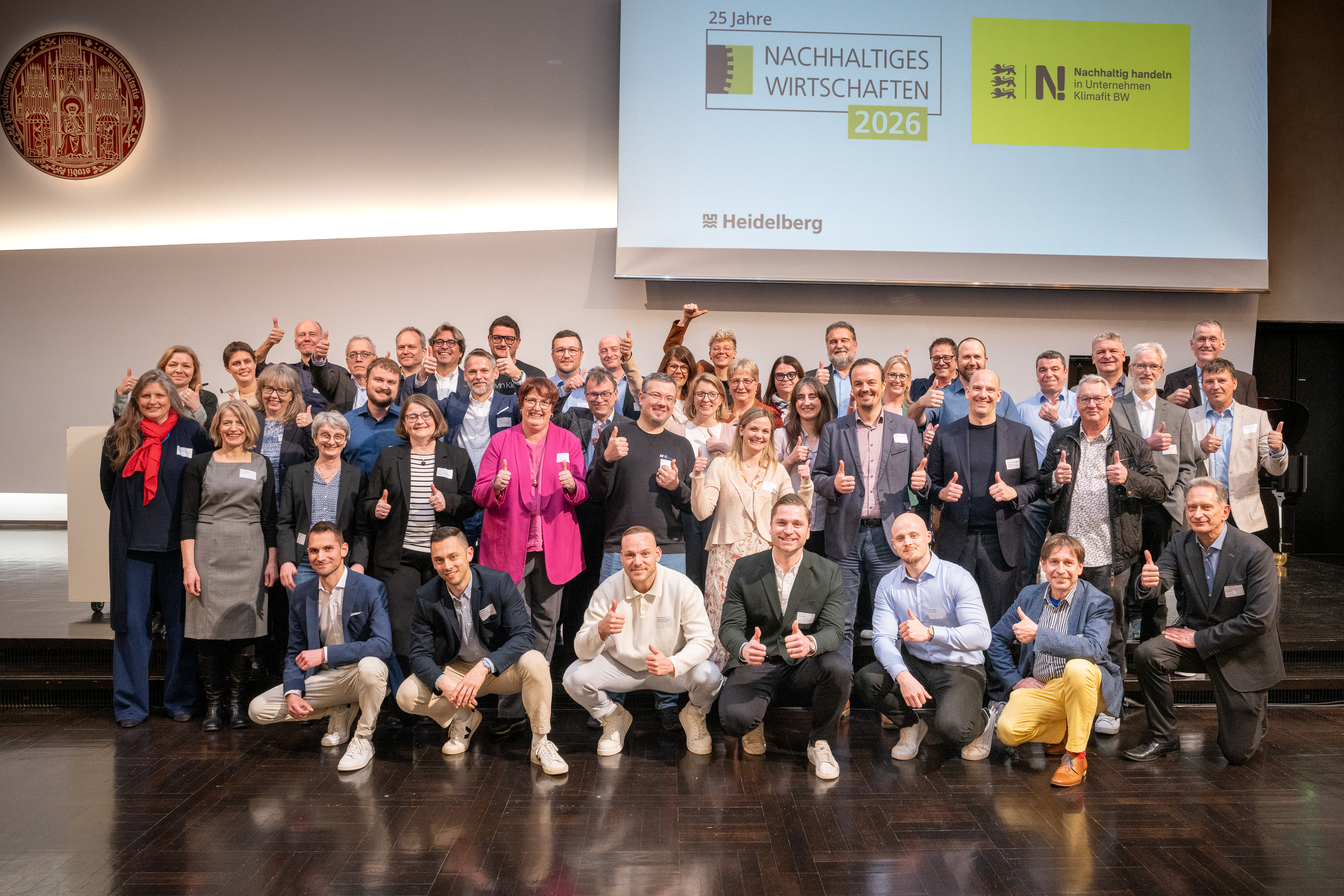 Sie produzieren umwelt- und klimafreundlich, übernehmen soziale Verantwortung und sparen dabei bares Geld. In den vergangenen 25 Jahren haben knapp 170 Heidelberger Unternehmen an dem städtischen Projekt „Nachhaltiges Wirtschaften“ teilgenommen. Sie haben in ihren Betrieben ein Umweltmanagementsystem eingeführt, Betriebsabläufe optimiert und ihren Ressourcenverbrauch gesenkt. Am 11. März 2026 wurden die elf Unternehmen der aktuellsten Projektphase mit dem Prädikat „Nachhaltiges Wirtschaften“ ausgezeichnet. Mit dem Förderprogramm KLIMAfit des Landes steht die Treibhausgasbilanz der Unternehmen und deren Verbesserung im Vordergrund.
