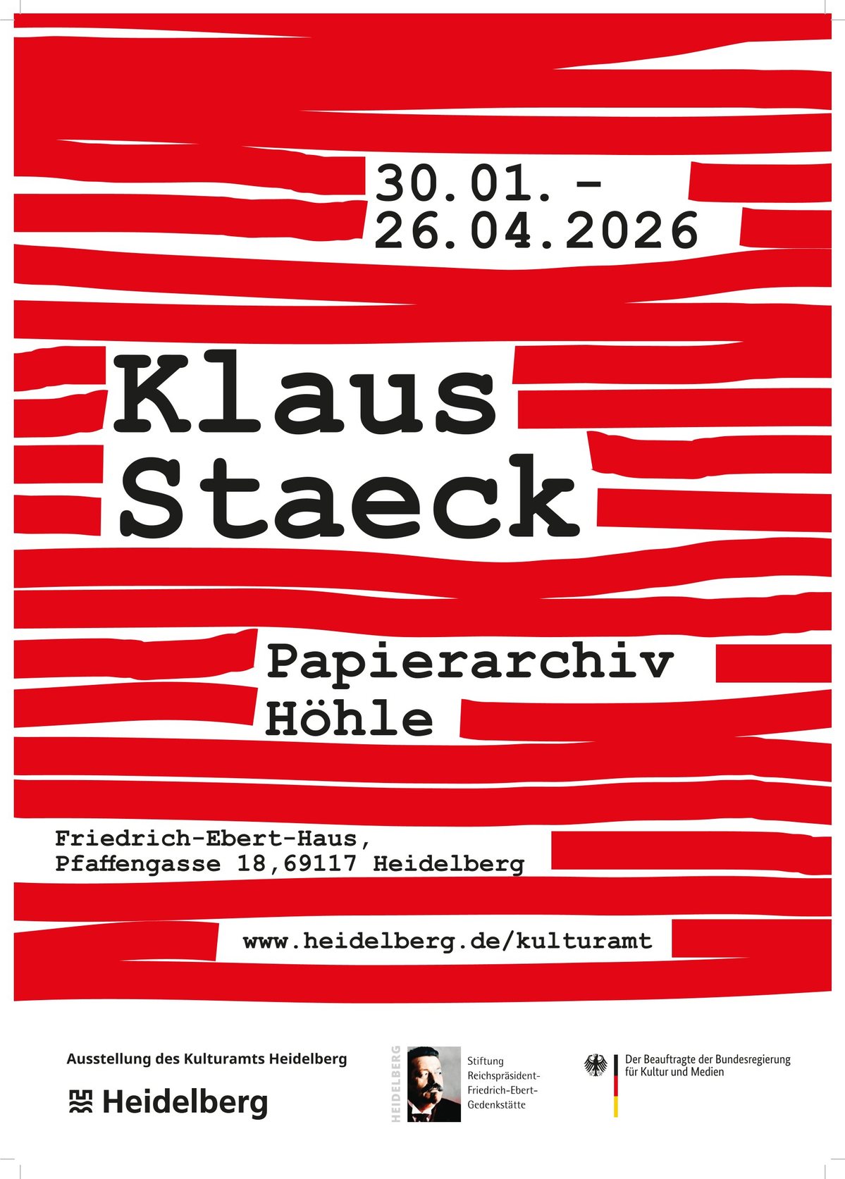 In Kooperation mit der Friedrich-Ebert-Gedenkstätte Heidelberg würdigt die Stadt Heidelberg mit einer Ausstellung die Arbeit des Heidelberger Künstlers Klaus Staeck.