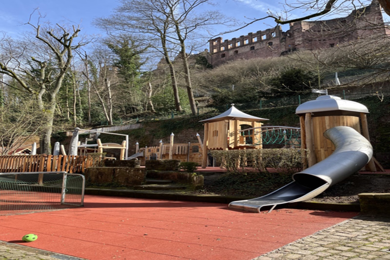 Unsere Einrichtung ist die älteste Kindertagesstätte Heidelbergs und deshalb genauso geschichtsträchtig wie der Stadtteil, in dem sie sich befindet. Abseits vom Straßenverkehr, ruhig gelegen, in unmittelbarer Nähe zum Schloss, liegt unsere Kindertagesstätte. In dem Gebäude befinden sich neben den Gruppenräumen ein Werkraum, ein Musikzimmer, ein Turnraum und das Bistro, das auch gleichzeitig als Begegnungsstätte dient. Ein weitläufiges Außengelände, mit großem Spielbereich, welches erst kürzlich erneuert worden ist und eine Wiese mit vielen Bäumen bieten den Kindern ein für diesen Stadtteil ungewöhnlich reiches Erfahrungs- und Bewegungsfeld. Die Lage des denkmalgeschützten Gebäudes bietet viele Möglichkeiten zu Spaziergängen und Exkursionen, sei es zum Schloss, Neckar oder zu einem der vielen Museen oder Theater.