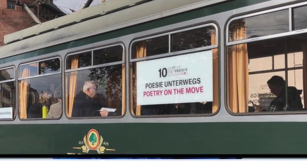 Schlüchtermann Ilka: Patin der von ihr für "Poetry on the Move" übersetzten Gedichte von Deborah Ewing, Sana Bella Ebrahim (I.S.) und Ken Cockburn; Durban, Edinburgh; plus Ray Liversidge / Bel Schenk, Melbourne