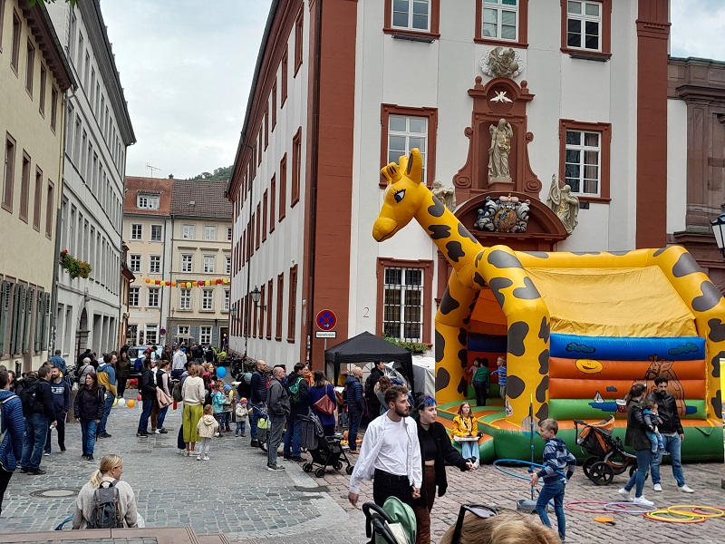 Ein Abstecher in die Seitengassen der Heidelberger Altstadt mit ihren vielen inhabergeführten Geschäften lohnt sich immer – nun bietet auch die Kettengasse einen weiteren Grund für Besuche. Seit Anfang Oktober zeigt sich die Straße geschmückt mit Bändern und Lampions in bunten Herbstfarben. Die Dekoration wurde im Rahmen des „Gassenfestes“ in der Ketten- und Heugasse angebracht. Bei der Veranstaltung im Oktober präsentierten sich ansässige Händlerinnen und Händler, Gastronomie und Dienstleistende mit Angeboten und Aktionen. Neben den Ständen der Betriebe wurde auch ein umfangreiches Kinderprogramm mit Hüpfburg, Spiel-Stationen, Kinderschminken und kostümierten Stelzenläufern gerne angenommen.