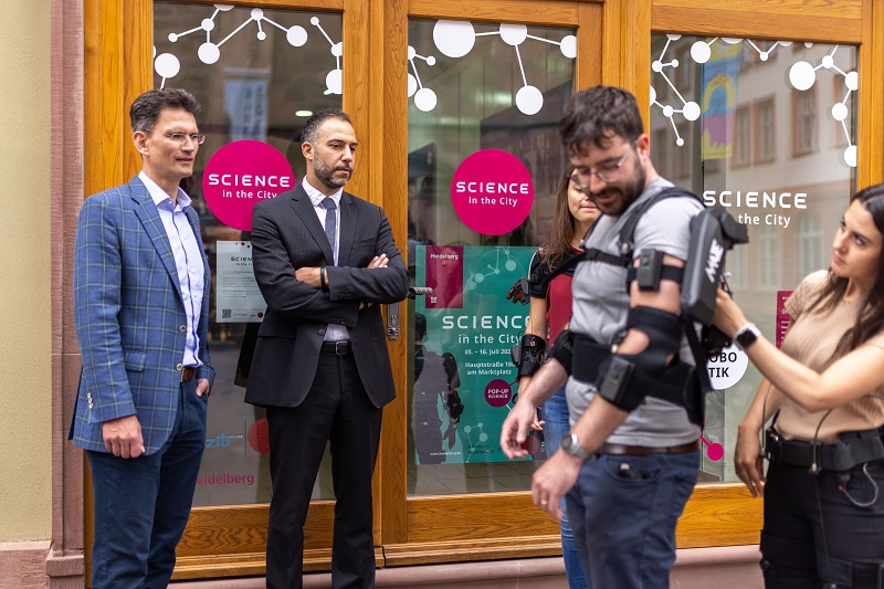 Im Juli 2022 bot das ARIES Labor am Institut für Technische Informatik der Universität Heidelberg in der Hauptstraße 180 direkt am Marktplatz spannende Einblicke in die Forschung im Bereich Biorobotik. Wie können sogenannte Exosuits uns in unserem Alltag unterstützen? Wie wird diese Technik in der Rehabilitation eingesetzt, oder in bestimmten Berufssparten? Wie funktioniert tragbare Robotik, die mitdenkt?