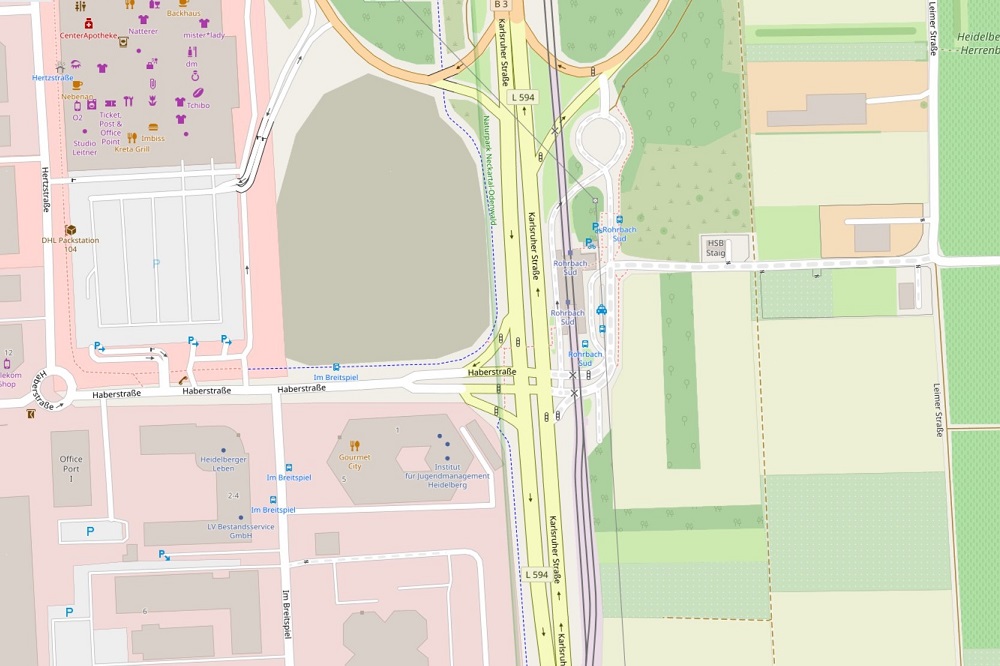 Straßenbahnhaltestelle Rohrbach Süd, direkt beim „Famila Center“ (Karlsruher Str. 151, 69126 Heidelberg)