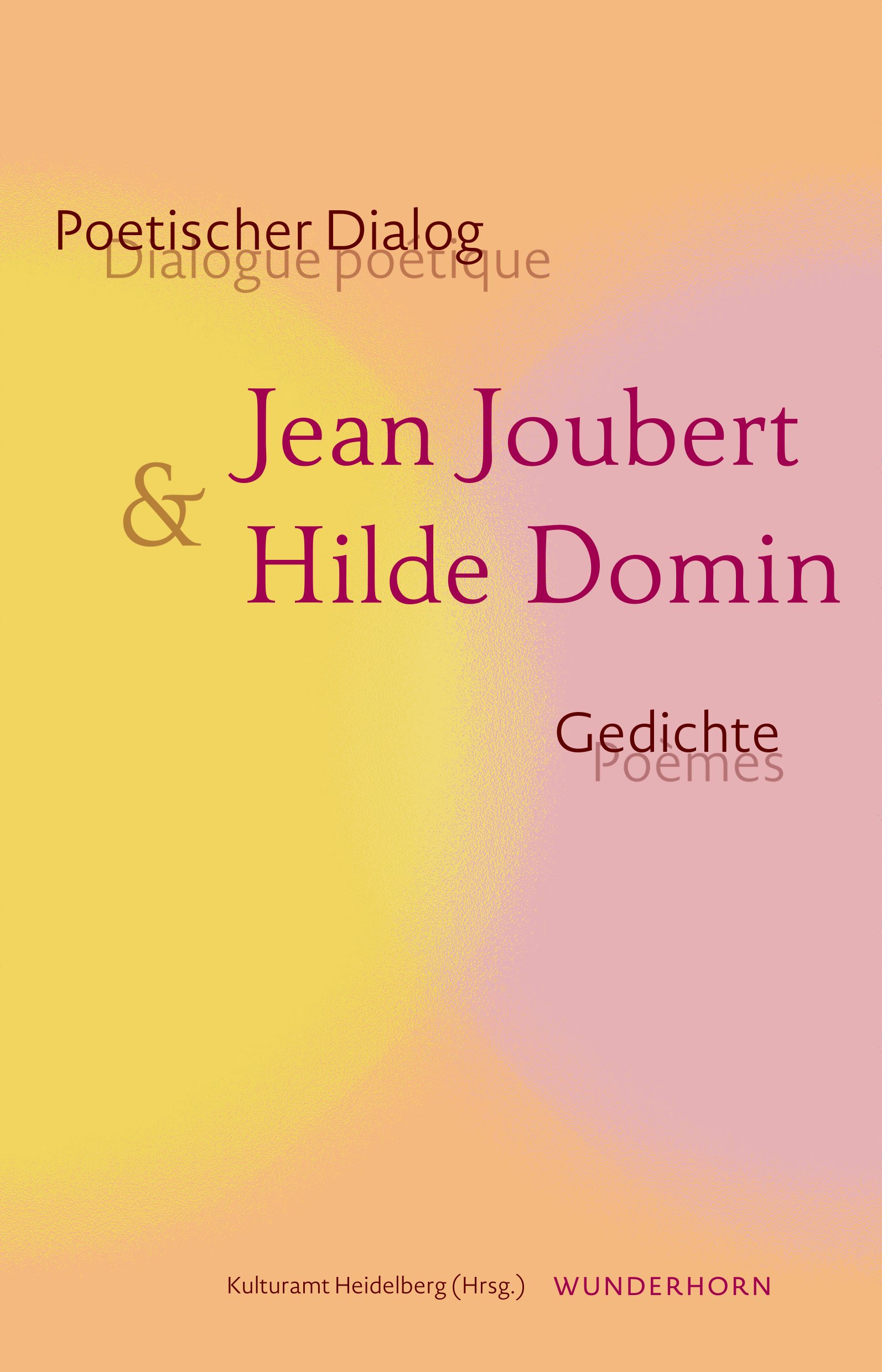 Die Ergebnisse beider Übersetzungsworkshops liegen nun mit dieser bilingualen Publikation erstmals in Buchform vor – auch, um die Gedichte von Hilde Domin und Jean Joubert einem breiteren interessierten Publikum in beiden Sprachen und Ländern zugänglich zu machen. Die Publikation erscheint im Rahmen einer geplanten Ausstellung im Haus Museum Cajeth zu Ehren von Hilde Domins 20. Todestag, die durch das Kulturamt Heidelberg organisiert wird.