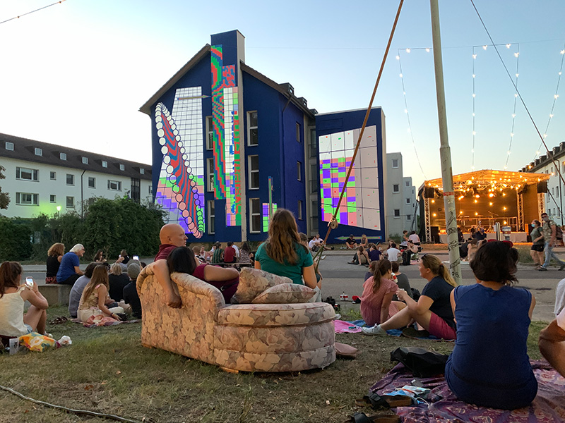 Auch beim Festival in PHV gab es großformatige, urbane Kunst, dazu Livemusik und kreative Performances. Die South-Gettysburg-Avenue in Patrick-Henry-Village war eine große Freilichtbühne für Street-Art, Licht-Design und Musik. 14 großformatige Kunstwerke malten Künstlerinnen und Künstler an die Fassaden im ehemaligen Wohngebiet der US-Streitkräfte. Um das Festival in Corona-Zeiten zu ermöglichen, war ein umfangreiches Hygienekonzept erstellt worden.