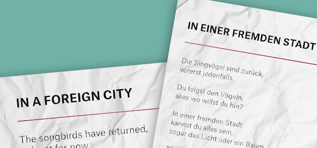 Programme, Projekte und Aktionen in Koordination des Kulturamts der Stadt Heidelberg NICHT MÜDE WERDEN - Ausstellung zu Hilde Domin Buchpremiere von und mit Hanna Osadko Heidelberger Literaturscouts Heidelberger Autorin als Reisestipendiatin in Estland Digitale Literaturkarte Literatur und Schule Poesiomat Poesie unterwegs Welttag der Poesie Worte im Widerstand Archiv Zurück zur Startseite