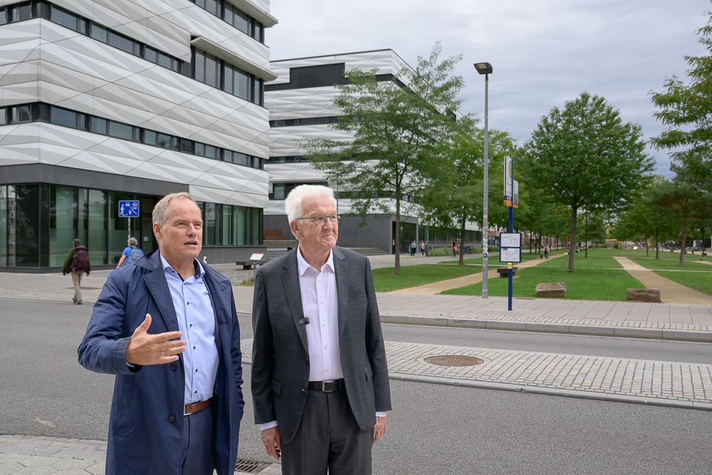 Die Bahnstadt steht für Innovation in allen Facetten – von der Unternehmensvielfalt über klima- und familienfreundliche Stadtplanung bis zu modernen Wohnformen. Davon hat sich der baden-württembergische Ministerpräsident Winfried Kretschmann am Donnerstag, 4. September 2025, im Rahmen seiner Sommertour in Heidelberg überzeugt. Oberbürgermeister Eckart Würzner zeigte Kretschmann bei einem Rundgang die Bahnstadt – eine der weltweit größten Passivhaus-Siedlungen, die international als Vorbild für nachhaltigen Städtebau dient.