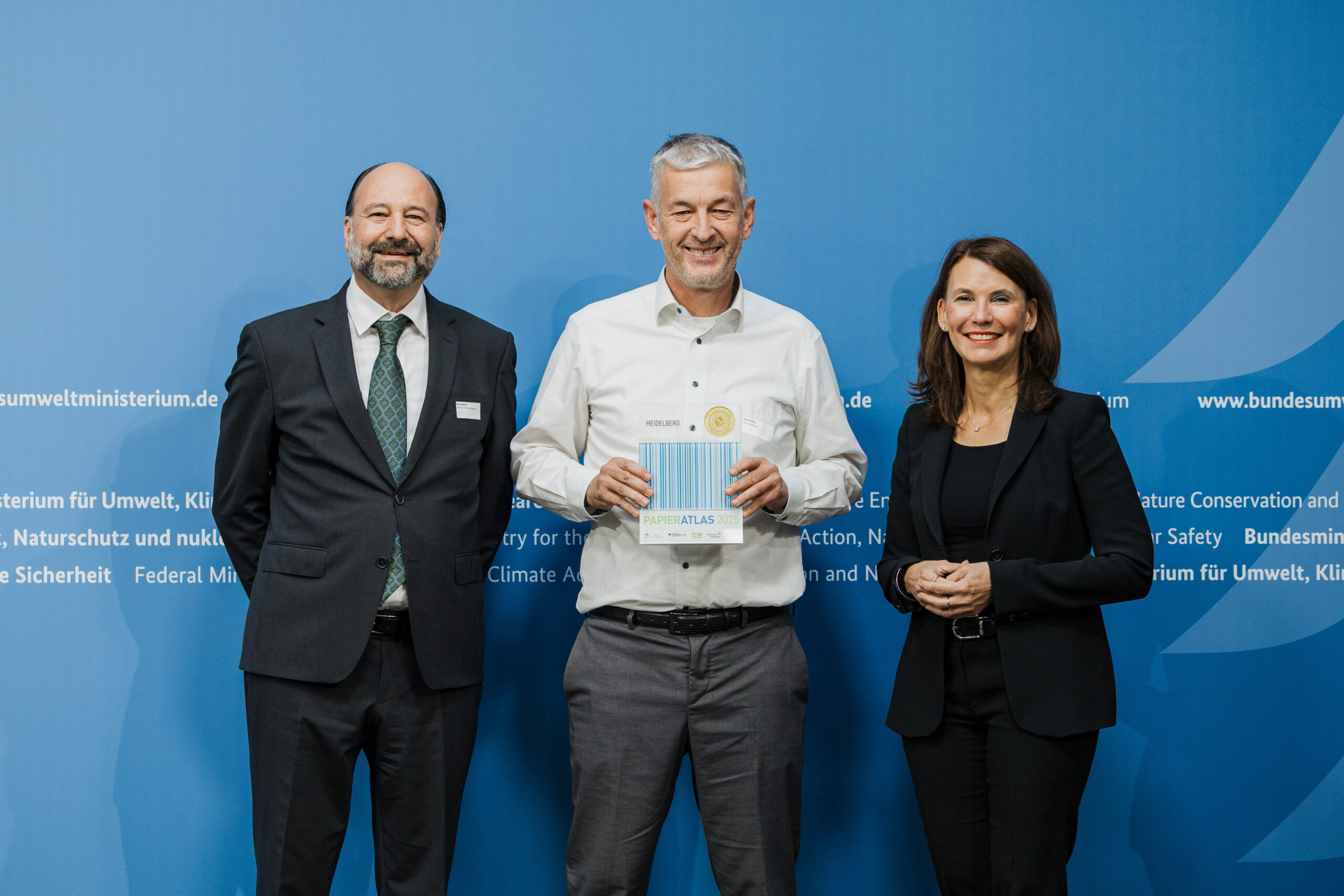 Die Stadt Heidelberg ist die „Recyclingpapierfreundlichste Stadt“ in Deutschland. Die parlamentarische Staatssekretärin Rita Schwarzelühr-Sutter hat die Auszeichnung am Dienstag, 4. November 2025, im Bundesumweltministerium in Berlin übergeben. Heidelberg setzte sich im Papieratlas-Städtewettbewerb 2025 der Initiative Pro Recyclingpapier (IPR) durch und erzielte den ersten Platz. In diesem Jahr beteiligten sich insgesamt 110 Groß- und Mittelstädte mit einer durchschnittlichen Recyclingpapierquote von 90 Prozent.