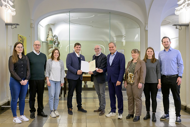 Für ihre 25. Blutspende wurden Benjamin Arnold, Martin Dörner und Irene Gieser mit der Ehrennadel in Gold mit goldenem Lorbeerkranz geehrt. Die Ehrennadel in Gold für jeweils zehn Blutspenden erhielten Ann-Kathrin Gelmroth, Nina Rücker, Sarah Schölch und Paulo Henrique Tsingos.