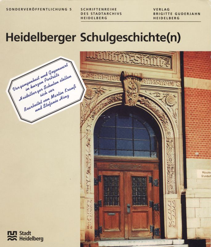 | Nr. 5 Heidelberger Schulgeschichte(n). Vergangenheit und Gegenwart in kurzen Porträts; Heidelberger Schulen stellen sich vor. Bearbeitet von Martin Krauß und Stefanie Hinz. Verlag Regionalkultur & Edition Guderjahn, Heidelberg - Ubstadt-Weiher 1996. ISBN 3-924973-56-3 € 12,00 |