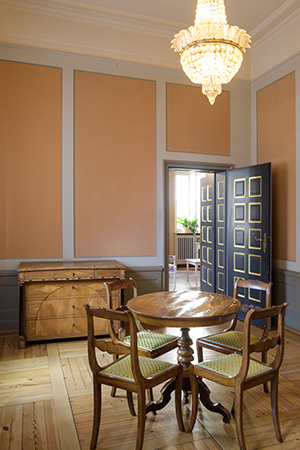Die majestätisch anmutende Pforte zum Vorraum des Hochzeitszimmers, eingerichtet im Original Biedermeierstil, ist nur eine kleine Facette der aufwendig gestalteten Trauungsräumlichkeiten des Rathauses. Art-Deco, Jugendstil, Historismus und Neoklassizismus sind die harmonisch verknüpften Stilrichtungen, die die Brautleute im Heidelberger Trauzimmer erwarten.