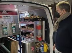 Oberbürgermeister Prof. Dr. Würzner unterwegs mit dem Wärmebus der Malteser