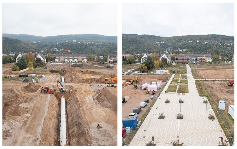 Noch in diesem Jahr wird mit der Errichtung der ersten Wohnbauten begonnen. Das städtische Wohnungsbauunternehmen GGH Heidelberg ist als Erschließungsträgerin für die Baureifmachung der Fläche verantwortlich und baut hier selbst die geförderten Wohnungen sowie die Quartiershochgarage. Einzelne Baufelder hat die GGH an private Bauträger verkauft und zur weiteren Entwicklung übergeben.