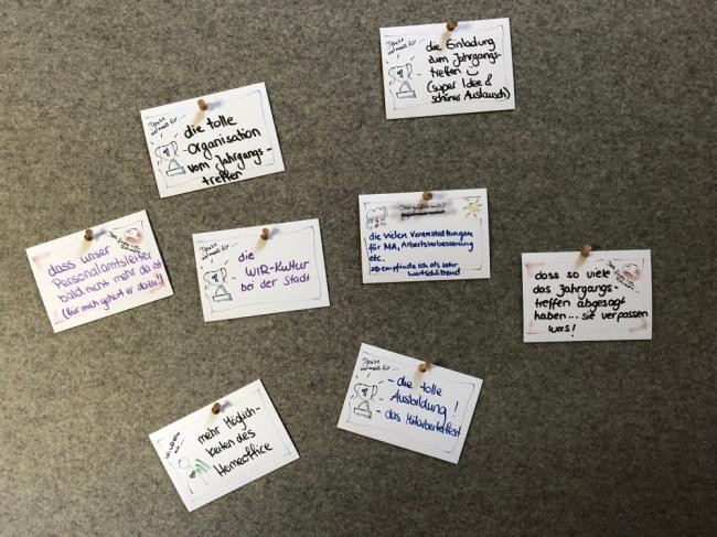 In Zeiten einer schnelllebigen Verwaltung mit sich immer verändernden Einflüssen und Herausforderungen, ist die Vernetzung untereinander ein zentrales Element für eine erfolgreiche Zusammenarbeit. Aus diesem Grund werden bei der Stadt Heidelberg regelmäßig Jahrgangstreffen veranstaltet für die Mitarbeiterinnen und Mitarbeiter des gehobenen Verwaltungsdienstes, für Betriebswirtinnen und Betriebswirte der Fachrichtungen „Öffentliche Wirtschaft“ und „Wirtschaftsförderung“ und für so genannte „Quereinsteigerinnen und Quereinsteiger“, die einen Ausbildungshintergrund außerhalb der öffentlichen Verwaltung haben.