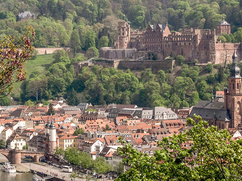 • Blick auf Heidelberger Schloss und Altstadt vom Philosophenweg