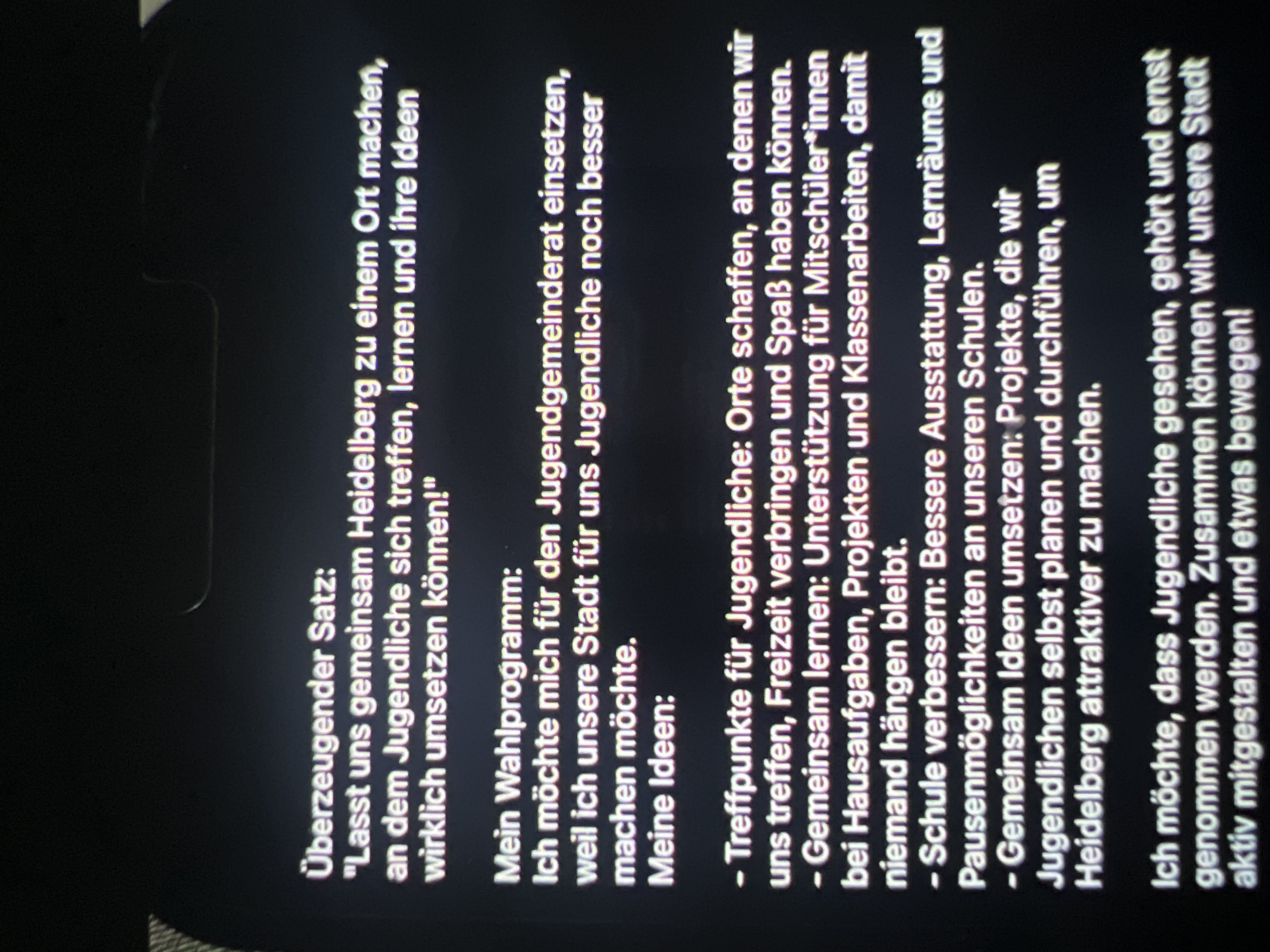 Ziele: Freizeit, Zusammenhalt, Schule stärken & Heidelberg gemeinsam gestalten! Zum Wahlprogramm (1,7 MB) |