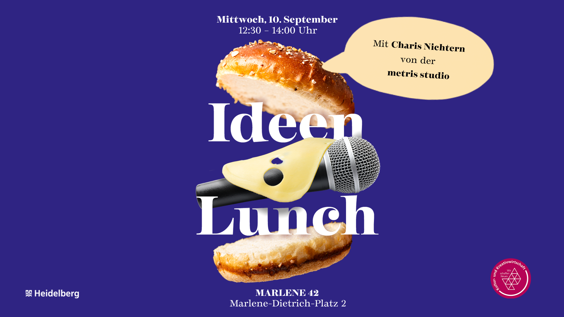 Das Branchentreffen „IdeenLunch“ der Kultur- und Kreativschaffenden ist ein monatlich stattfindendes Informations- und Vernetzungsangebot der Stabsstelle Kultur- und Kreativwirtschaft der Stadt Heidelberg. Jeden zweiten Mittwoch bietet es Kreativschaffenden zur Mittagszeit die Möglichkeit, sich in ungezwungener Atmosphäre auszutauschen. Nach einem lockeren Get-together und gemeinsamem Mittagessen folgt ein kompakter Impulsvortrag zu aktuellen Projekten und relevanten Themen der Kultur- und Kreativwirtschaft. Diese orientieren sich an aktuellen Themen im Kontext der 17 Ziele für nachhaltige Entwicklung der Vereinten Nationen.