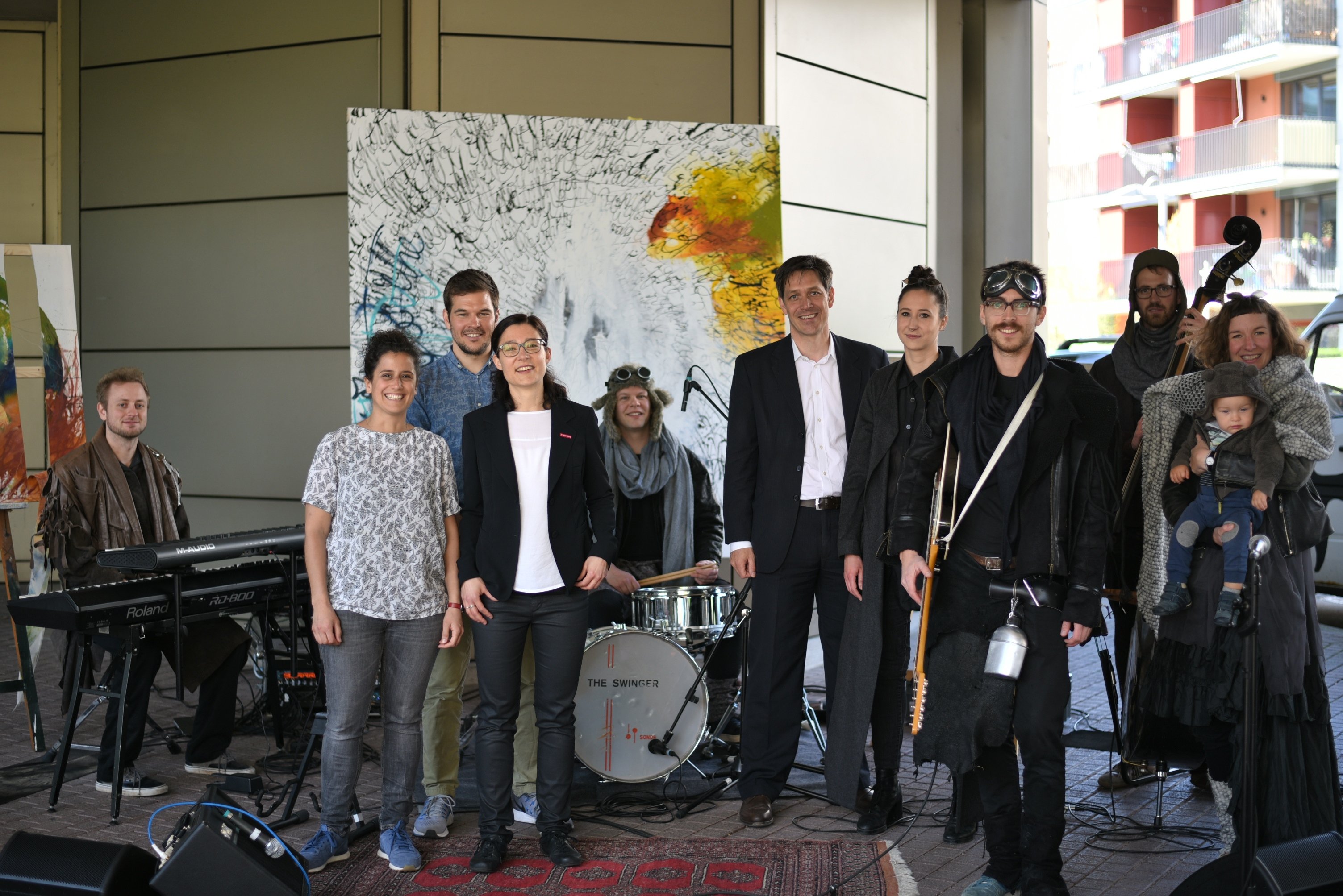 Der 4. FensterLunch im April überraschte mit einem Live-Konzert von Dominik Baer & Band. Der Heidelberger Singer-Songwriter gab mit seiner Indie Pop-Band eine musikalische Kostprobe seines Debütalbums „Colliding In The Dark“. Bei strahlendem Sonnenschein konnte das mittägliche Branchentreffen erstmals im Freien und um den FensterPlatz herum stattfinden.