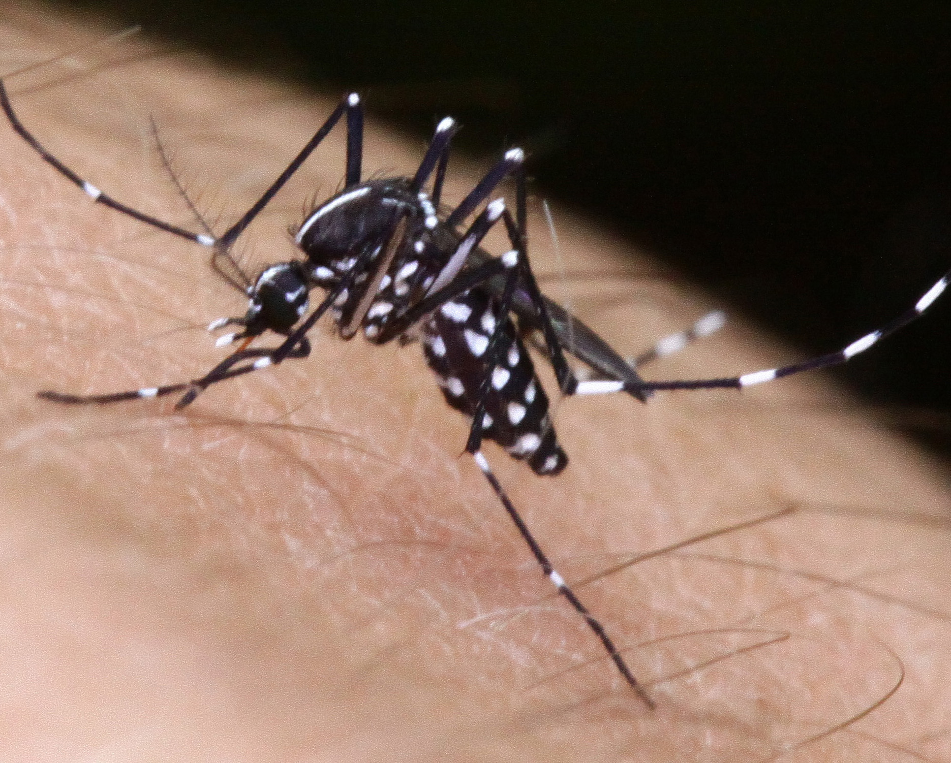 Die nur wenige Millimeter große Tigermücke ist leicht an ihren schwarz-weißen Streifen zu er-kennen.