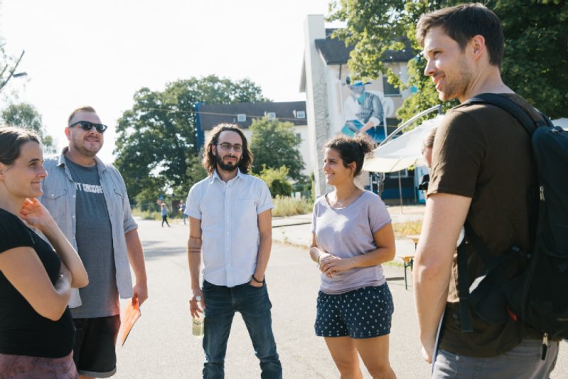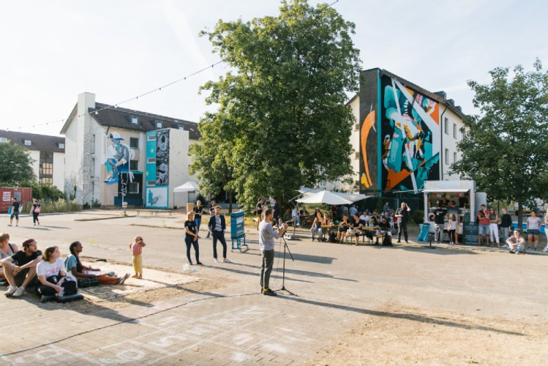 FensterLunch on tour! Das Metropolink-Festival 2019 gab Anlass genug, das monatliche Branchentreffen der Kultur- und Kreativschaffenden in Heidelberg - außer der Reihe - auf die ehemalige US-Army-Fläche Patrick-Henry-Village (PHV) zu verlegen. Startpunkt auf PHV am 10. Juli 2019 war der ehemalige Supermarkt. Vor der Commissary stellte Pascal Baumgärtner das Festival für urbane Kunst "Metropolink" sowie seine Pläne für die Commissary vor: die PX Factory, eine Kunsthalle mit internationalem Flair zu erschaffen. Im Rahmen des FensterLunches @ Metropolink konnten sich die Gäste bereits einen ersten Eindruck von den Kunstwerken und künstlerischen Installationen machen.