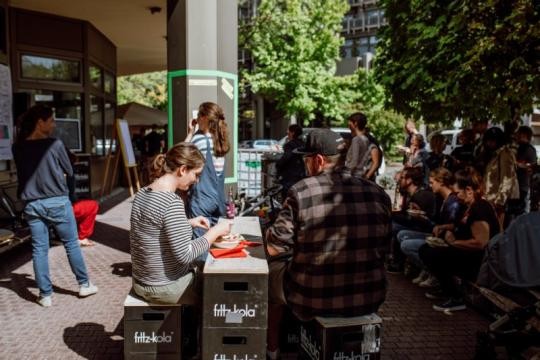 Beim FensterLunch im September 2019 haben die beiden Heidelberger Illustrator*innen Max Bachmeier und Lara Schmelzeisen den Einsatz und die unterschiedlichen, ganz individuellen Möglichkeiten des Graphic Recordings präsentiert.