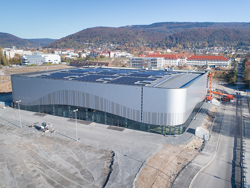Die neue Großsporthalle an der Speyerer Straße in Kirchheim steht kurz vor der Fertigstellung