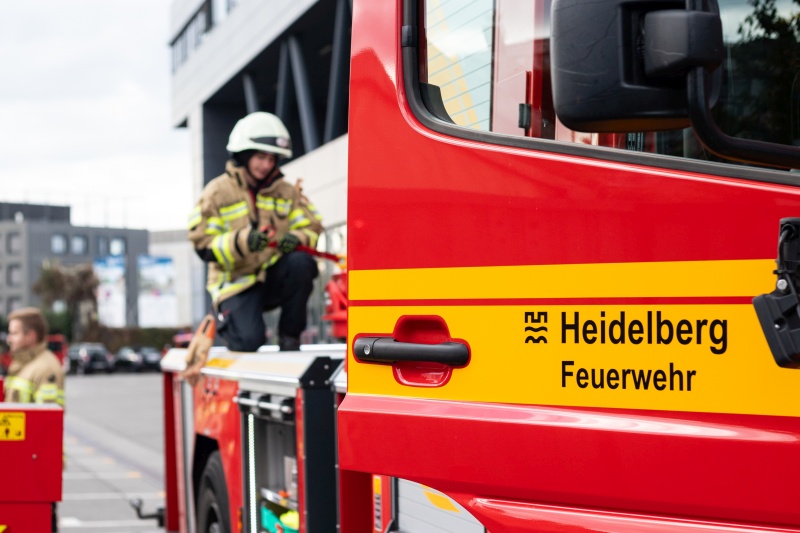 Sechs Teilnehmer aus mehreren Abteilungen der Freiwilligen Feuerwehr Heidelberg haben den Umgang mit dem Absturzsicherungsset erlernt.