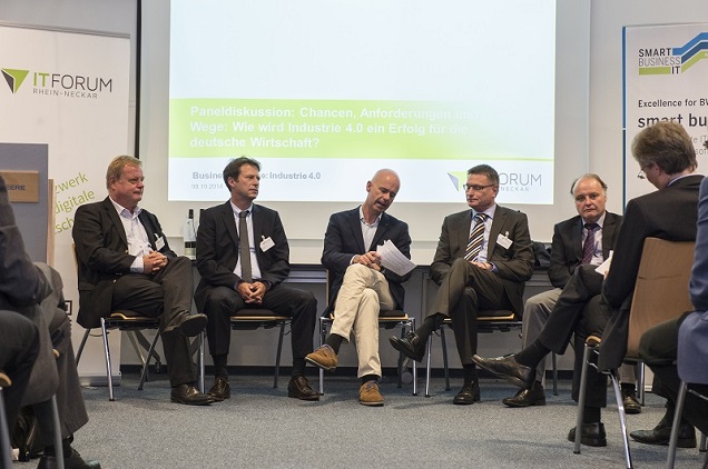 Zu der gemeinsam von IT-Forum Rhein-Neckar, Gesellschaft für Informatik und Verband der Elektrotechnik Kurpfalz organisierten Veranstaltung waren renommierte Referenten aus Praxis, Politik und Wissenschaft geladen, die in mehreren Vorträgen und einer anschließenden Podiumsdiskussion ganz verschiedene Perspektiven der Thematik aufzeigten. Als Erfolgsfaktoren zur Umsetzung von Industrie 4.0 identifizierten sie internationale Standards, neue Geschäftsmodelle und Mut.