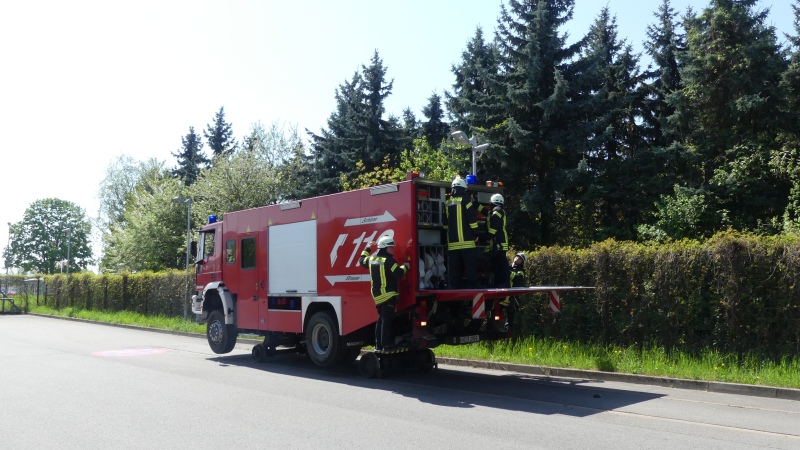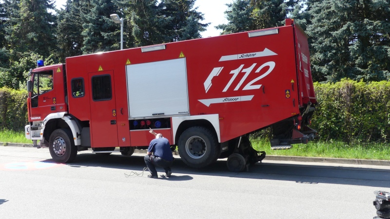 Eingleisen des HLF Straße/Schiene auf den Übungsschienen
