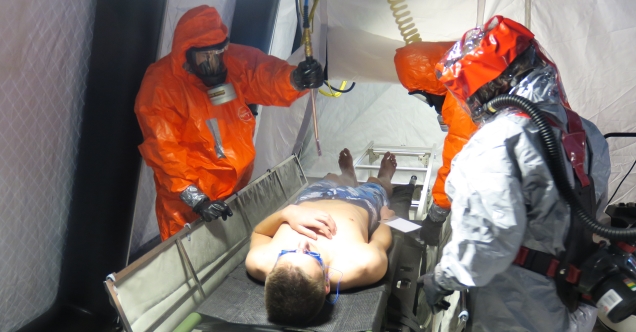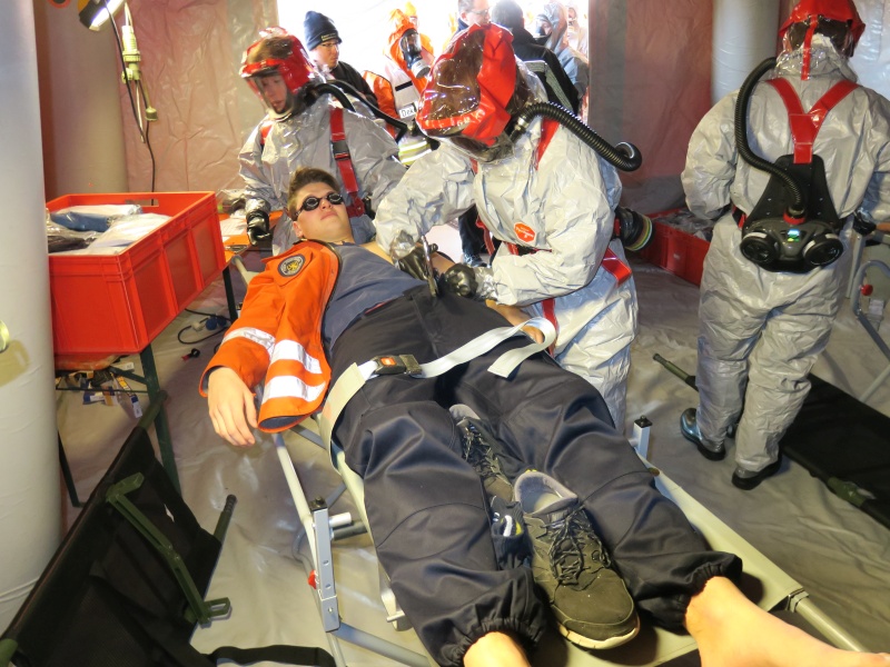 Mit der vom Land zur Verfügung gestellten Ausstattung, die auf einem Abrollbehälter verlastet ist und durch Sonderfahrzeuge wie zum Beispiel dem Gerätewagen Dekon-P ergänzt wird, kann an der Schadensstelle eine Anlage zur Durchführung der Dekontamination aufgebaut werden. Neben einem großen Duschzelt für gehfähige Personen wird auch eine spezielle Anlage für nicht gehfähige Verletzte aufgebaut, in der die Dekontamination erfolgt. In dieser Anlage werden die Verletzen mittels einem Schienensystem auf wasserdurchlässige Tragen durch das Zelt geschoben und schrittweise dekontaminiert.
