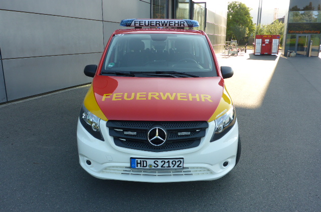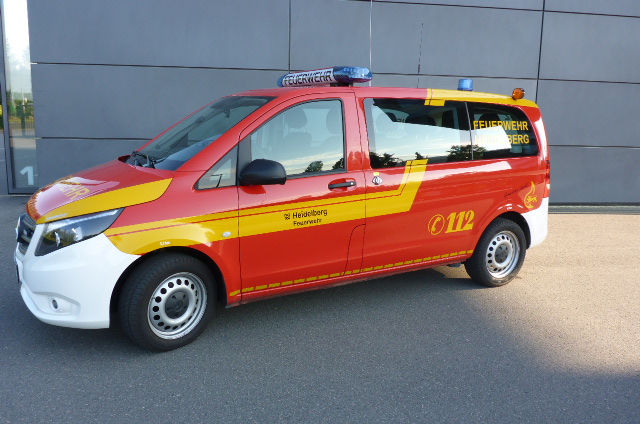 Auch der neue MTW ist im Fahrzeugdesign der Feuerwehr Heidelberg beklebt, welches Elemente des Leitbildes der Feuerwehr Heidelberg sowie das Landessignet der baden-württembergischen Feuerwehren aufgreift. Am Fahrzeugheck ist die Beklebung in Reflexionsfolie ausgeführt, welche gerade am Abend oder in der Nacht eine zusätzliche Warnfunktion bietet.