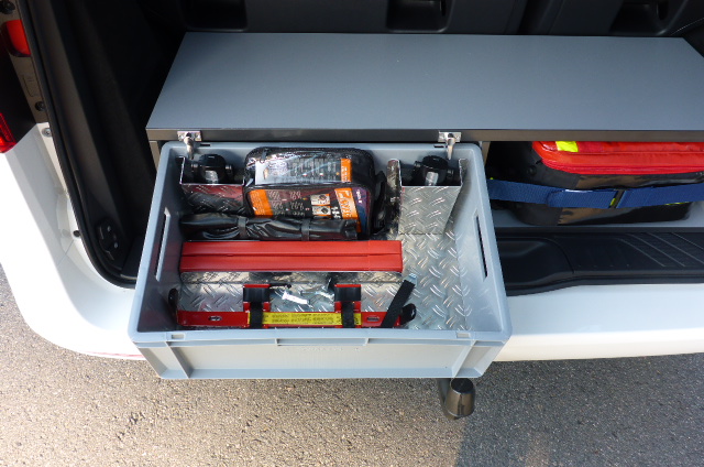 Die Fahrzeugbeladung umfasst neben einer Handlampe, zwei Handsprechfunkgeräte sowie einen Notfallrucksack.